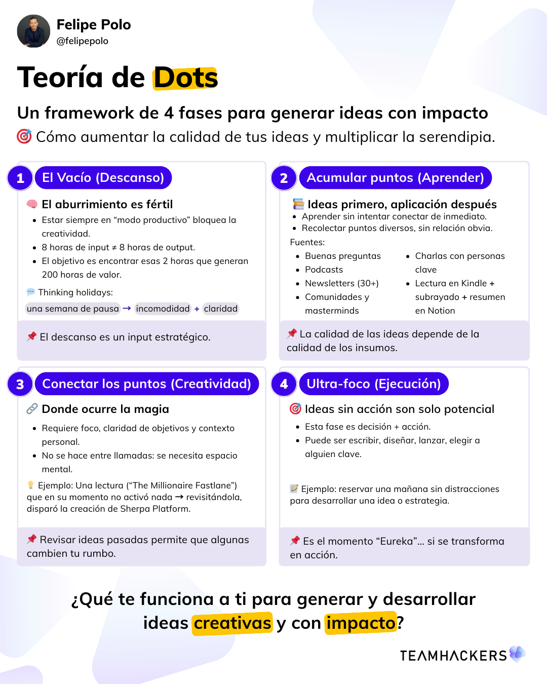 Cuéntame, ¿qué te funciona a ti para generar y desarrollar ideas creativas y con impacto?
