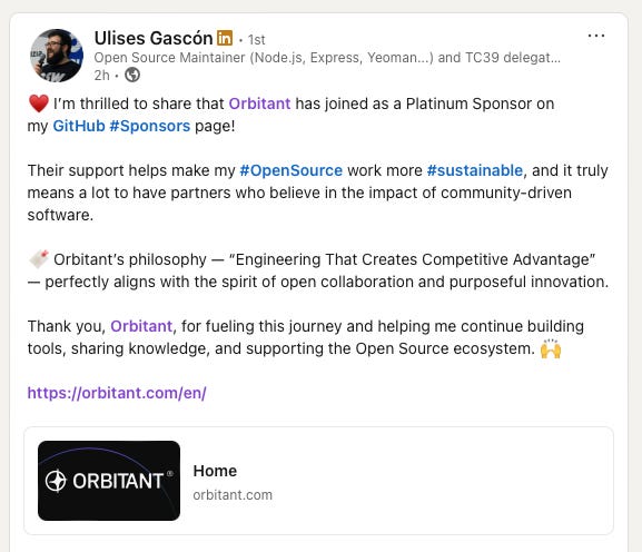 En Linkedin escribo mi viaje convirtiendo Orbitant en una consultora de software que facture millones sin que dependa de mí.