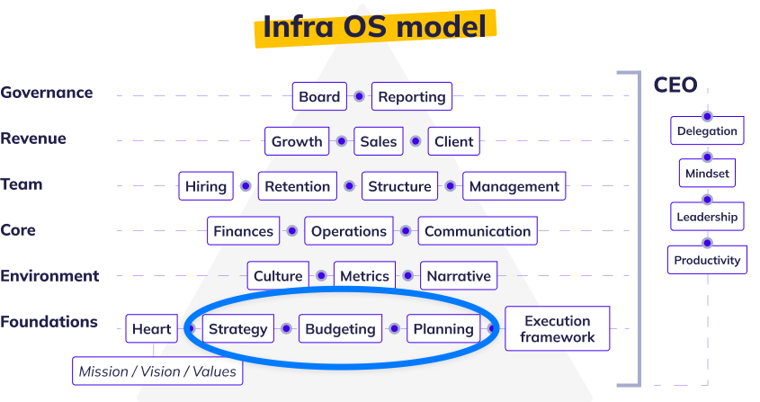 Si estás familiarizado con mi modelo de infrastructura empresarial, te habrás fijado en que varios de los sistemas que forman los “cimientos” de todo lo demás tienen que ver con la estrategia, el presupuesto y la planificación.