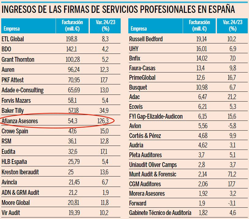 En este gráfico de Expansión aparecían la 9ª en volumen de facturación en el sector de servicios profesionales. Pocos meses después ya están en la posición 5 con un volumen de más de 70M en facturación.